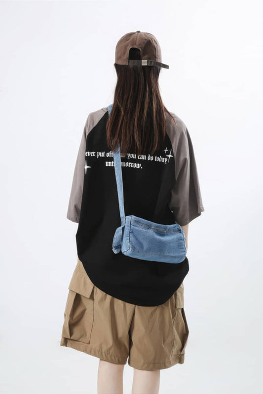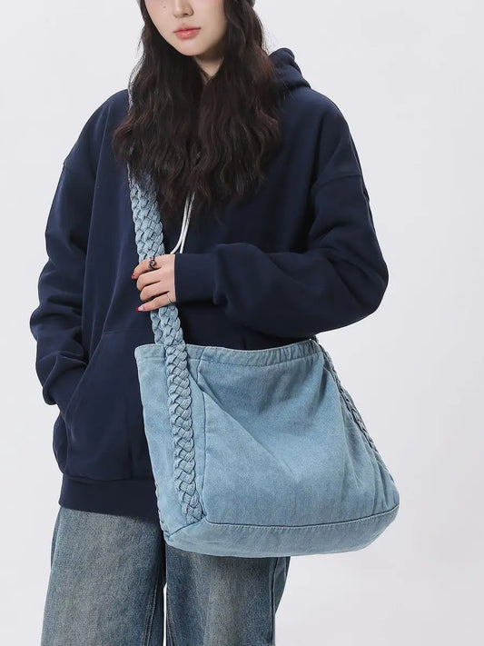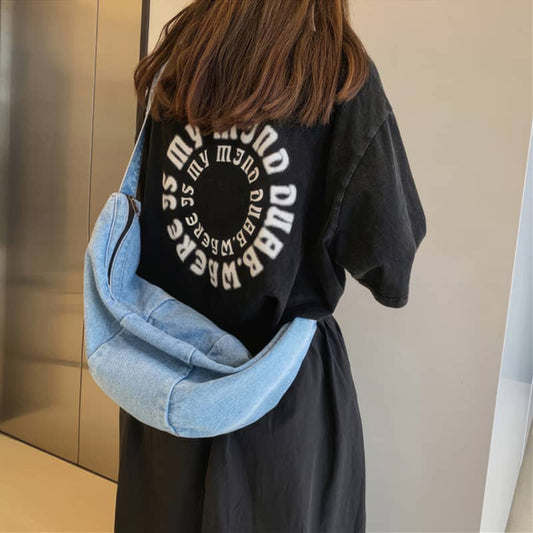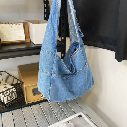 Large capacity denim crossbody bag