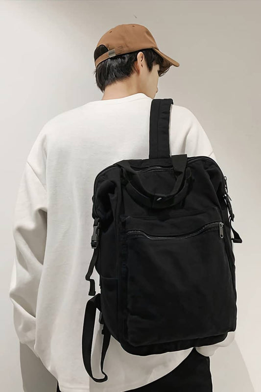 Casual solid color canvas backpack