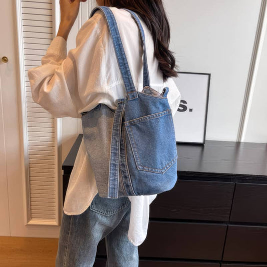 Commuter Denim Tote Bag with Spacious Capacity