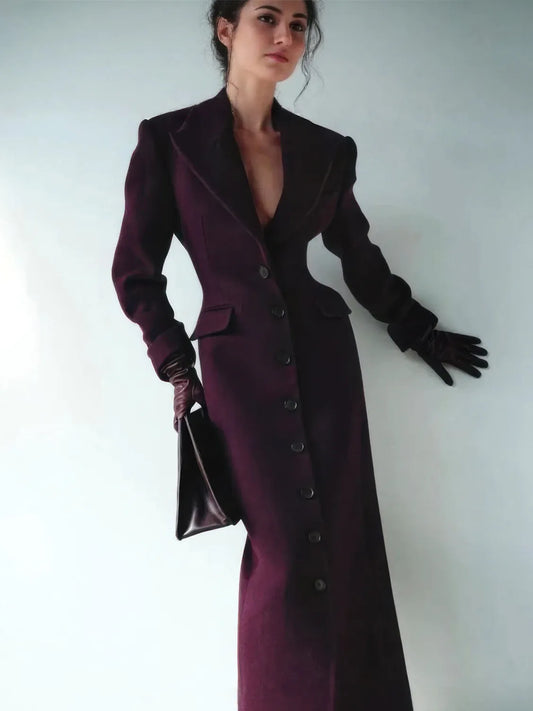 Women's Lapel High-Waisted Long Wool Coat
