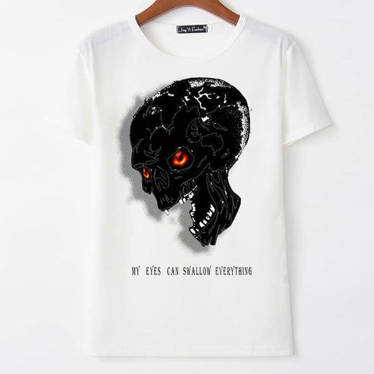 Black hole 3D skull print round neck short sleeve T-shirt women