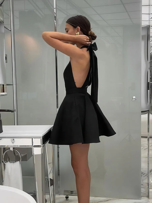 Regular price $47.70Regular price $47.70Unit price / per$60.00Sale priceBlack Lace Backless Waisted V-Neck A-Line Dress