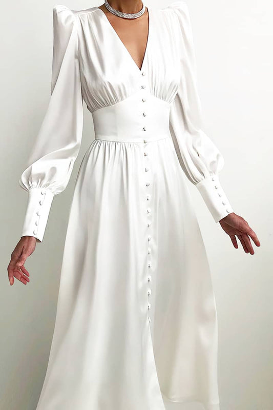 White V-Neck Swing Dress