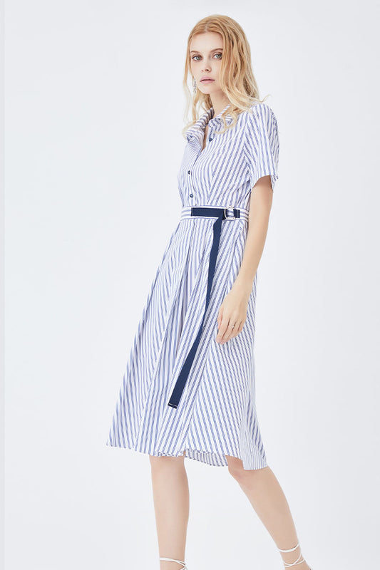 Classic Stripe Fitted Shirt Dress