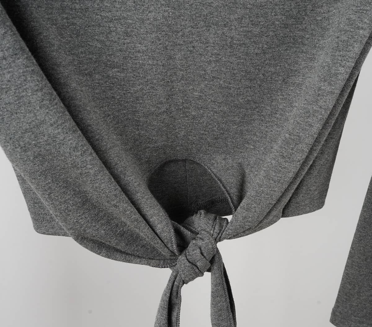 Shoulder-padded cotton long-sleeved T-shirt with round neck and right-angle shoulder design