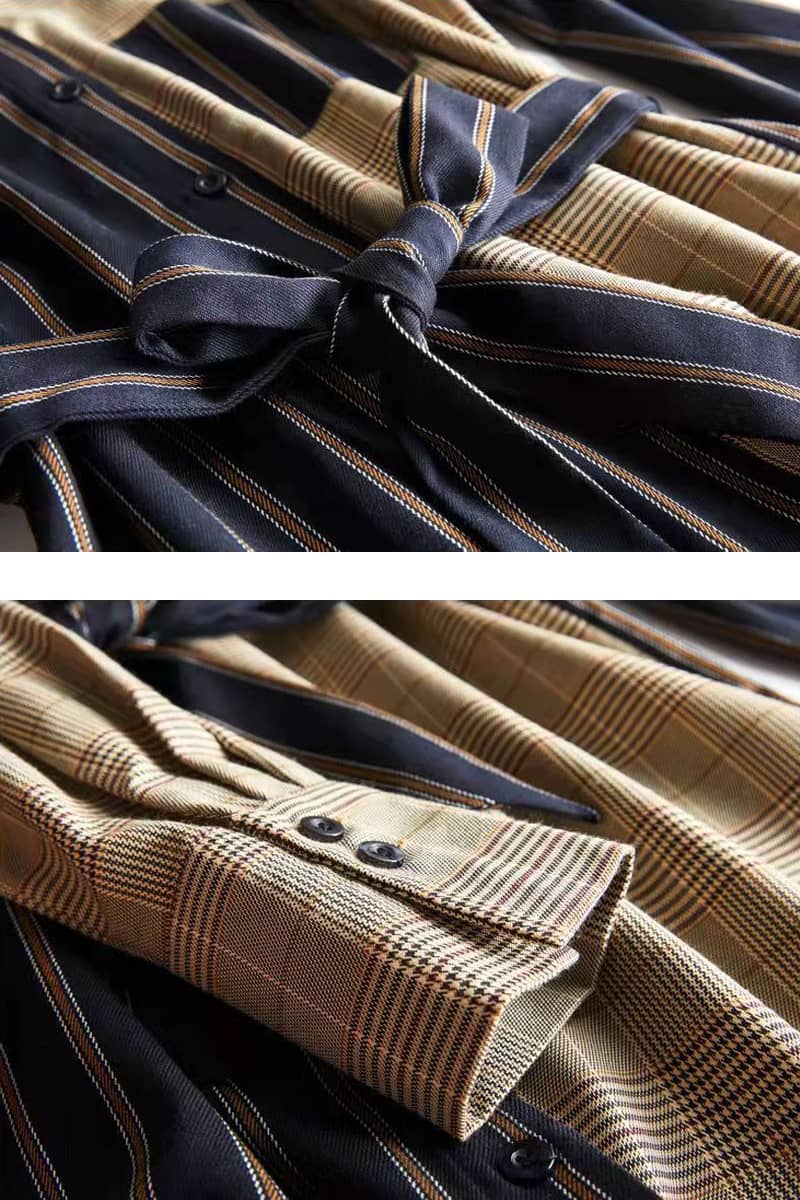 Commuter check shirt dress with lapel temperament.