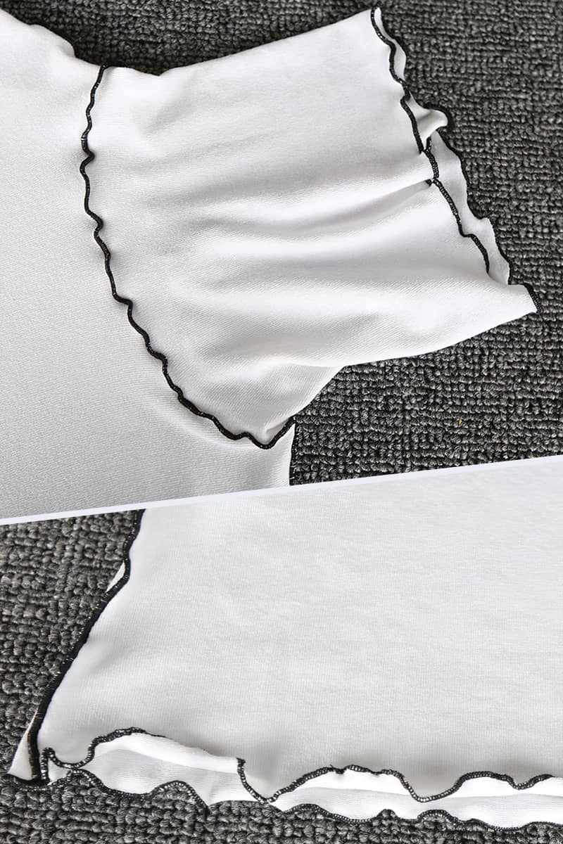 Contrasting color lace high neck super long sleeve slim short bottoming shirt T-shirt.