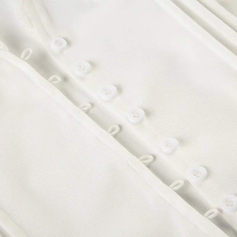 This Lace Panel V-Neck Puff Short-Sleeve Shirt combines delicate lace detailing with a flattering V-neckline for a sophisticated touch. The puff sleeves add volume and structure, creating a modern silhouette. Crafted for comfort and style, it elevates everyday wear with its elegant design and breathable fabric. Ideal for layering or as a statement piece on its own.