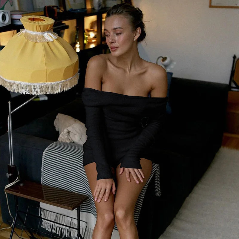 Stay warm and stylish in our Long-sleeved open-back knitted plush tights jumpsuit. The perfect combination of comfort and fashion, this jumpsuit features a cozy