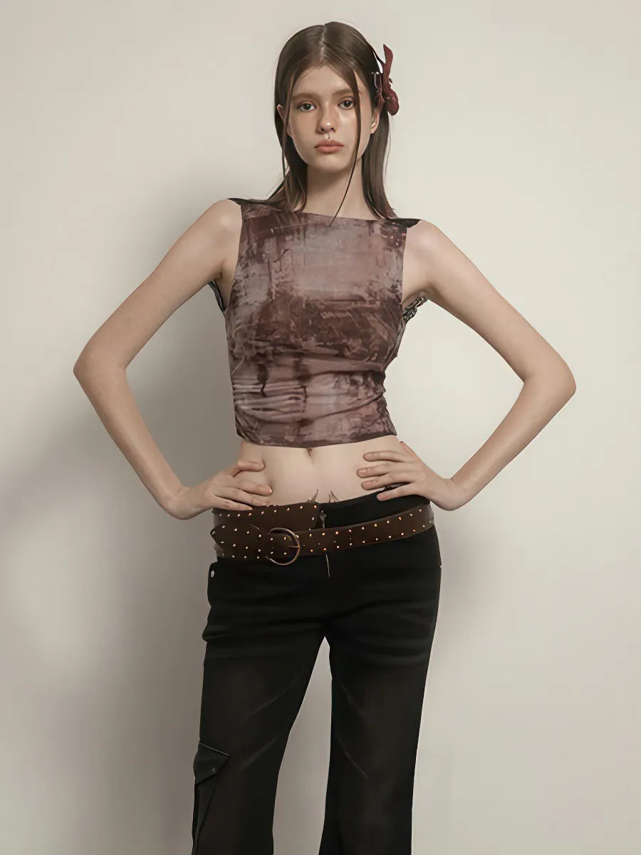 Expertly crafted with a touch of elegance, this sleeveless T-shirt boasts a unique backless design and intricate lace details. The perfect blend of style and comfort, it's a must-have for any fashion-forward individual.