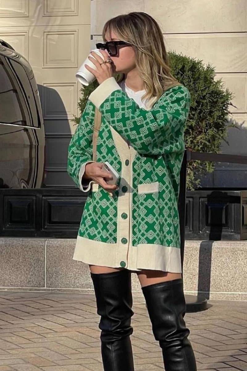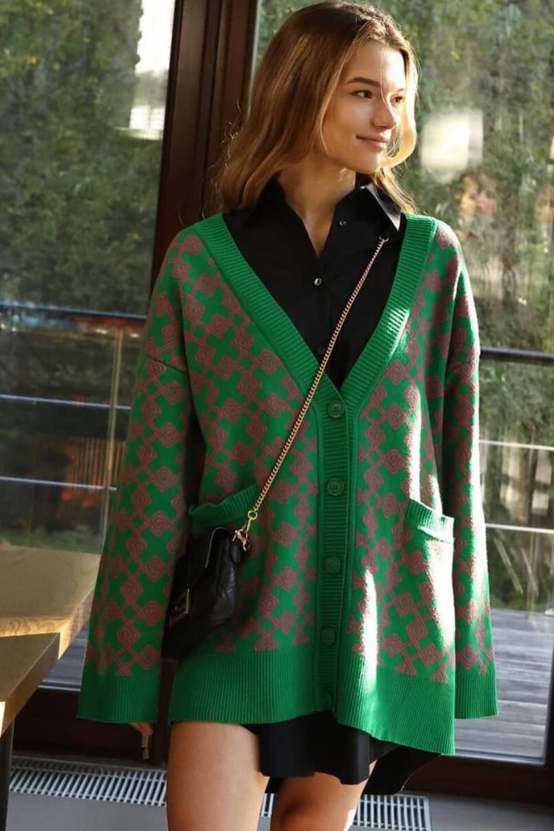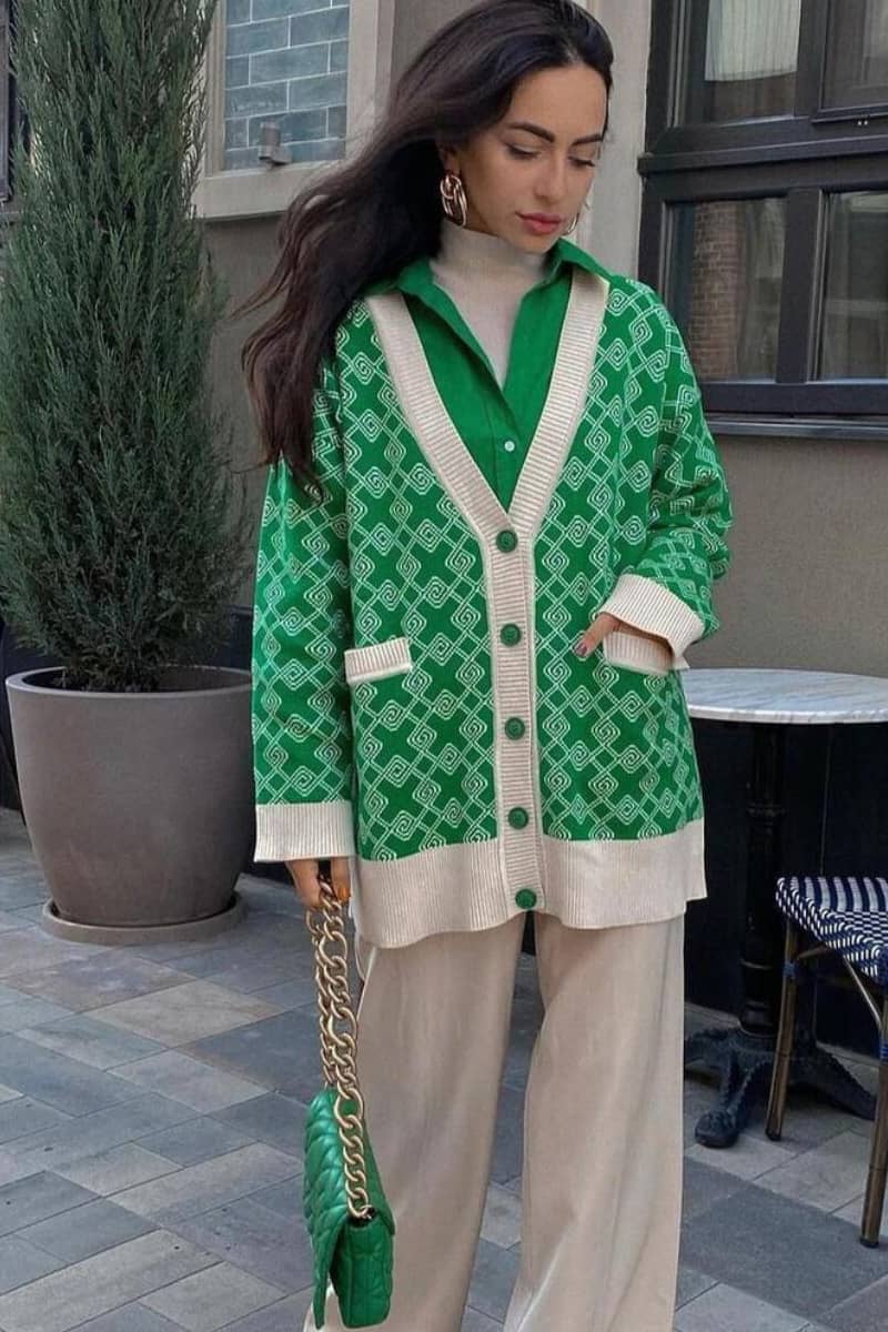 Sweater cardigan jacquard mid-length cardigan