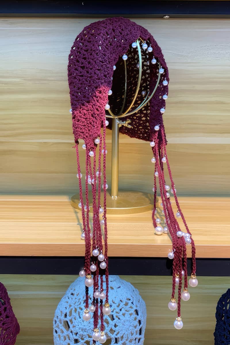 This unique handmade pearl tassel hollow cap is the perfect way to add a touch of style and sophistication to your outfit. Crafted with care and precision, this exquisite headwear is sure to be a conversation starter.