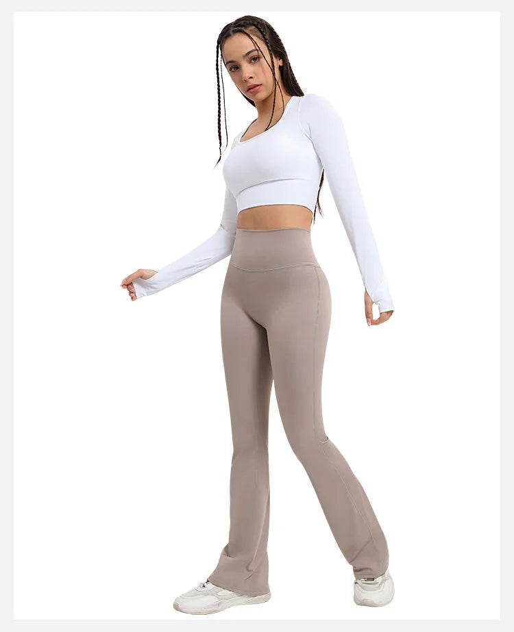 Stay comfortable and stylish during workouts with our Quick-dry Waist Pocket Tight Flared Gym Pants. Made with moisture-wicking fabric, these pants keep you cool and dry while the flared design adds a touch of flair. Convenient pockets keep your essentials within reach. Perfect for the gym or everyday wear.