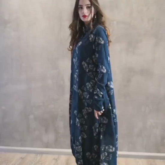 Hand-brushed stand-up collar design, three-piece buckle decorative collar, customized cotton printed fabric, comfortable hand feel, and the printed patterns are free and personalized. Loose-fit design, comfortable to wear with short front and long back.